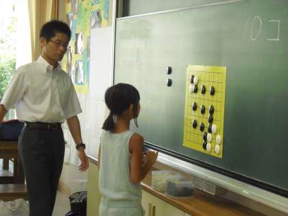 8/26(日)今日は、囲碁教室の先生をお呼びして、はじめての囲碁を教わりました。楽しいクイズから始まり、ミニ碁盤をプレゼントされて石の並べ方をおぼえました。囲碁は頭と心を鍛えることができるそうです。関先生ありがとうございました。また、「やさしい英語」の二回目もありました。川口さんありがとうございました。