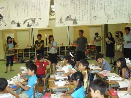 三連休がおわり、今日は一年一組で国語の研究授業がありました。「おおきなかぶ」の物語を登場人物の気持ちを考えながら工夫して音読する学習でした。子どもたちはおばあさんや犬やねずみになりきって、大きな声でお話を読んでいました。一年生は学習発表会はどんな劇をやるのでしょうか。楽しみですね。