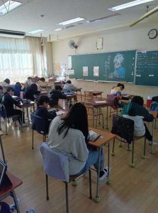 4年生は、体育館で大きなカルタ取り、5年生は、三学期の目標を、6年生は係ぎめをしていました。
