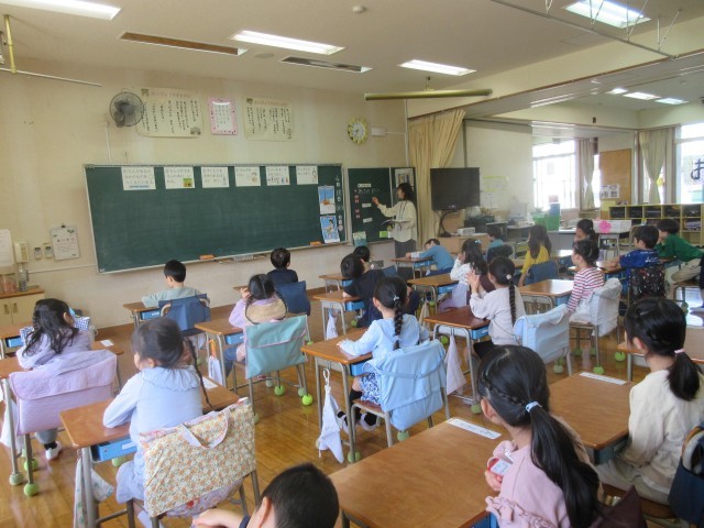 1年生は朝の会をしています。