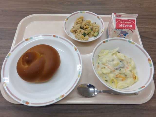 黒砂糖パン シシリアン ひよこ豆のサラダ 牛乳