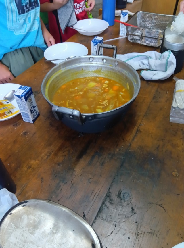 飯ごう炊さん、みんなと協力してカレーをつくりました。おいしくできました。