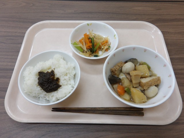 ごはん のりの佃煮 五目うま煮 からしあえ 牛乳