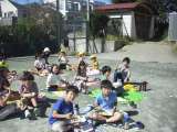 今日は久しぶりにたてわりの交流をしました。給食室で作られたお弁当を、校庭で班ごと...