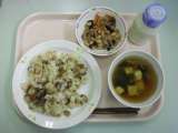 【献立】 きのこごはん 牛乳 豚汁 いか...