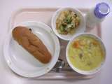 【献立】 丸パン 牛乳 ビーンズコロッケ 卵スープ ...