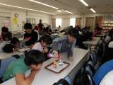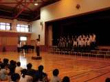 25日。中町小学校は2階の渡り廊下で玉川中学校とつながっています。今日の音楽朝...