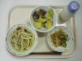 【献立】 煮こみうどん 牛乳 カミカミサラダ ...