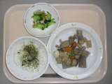 【献立】 ひじきごはん 牛乳 いなか汁 に...