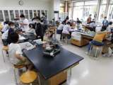理科室では実験を行いました。「水の3つの姿」を学習しました。フラスコに入れた水...