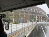 車窓からの見学です。 新国立競技場です。説明をメモしています。