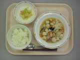 【献立】 里芋ごはん 牛乳 いかのかりんと揚げ ...