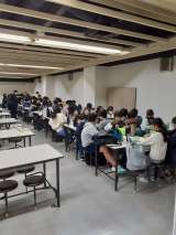 科学技術館の団体スペースで、ちょっと早めのお弁当タイムです。