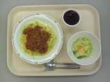 【献立】 スパゲッティみそミートソース 牛乳 ポテト入...