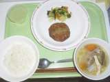 今日の献立は、菜めし、牛乳、大根ステーキ、たたきごぼう、ちゃんこ汁、りんごゼリ...