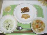 今日の献立は、ごはん、牛乳、むろあじのサンガ焼き、野菜の辛子和え、豚汁、柚子ゼ...