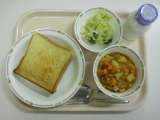 【献立】 ハニーミルクトースト 牛乳 ポークビーンズ ...