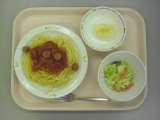 【献立】 スパゲッティトマトソース 牛乳 ポテト入りサ...