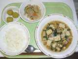 今日の献立は、ごはん、牛乳、四川豆腐、バンサンスー、はちみついもだんごです。さ...