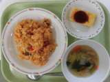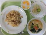 今日の献立は、牛乳、チキンライス、洋風卵焼き、白菜のスープです。 今日使用の食...