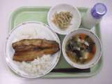 【献立】 ご飯 牛乳 魚のてりやき ほうれん草の乾物...