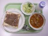 【献立】 食パン 牛乳 ココアクリーム ポークシチュ...