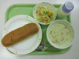【献立】 ミルクパン 牛乳 シーフードシチュー パリ...