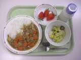 【献立】 カレーライス 牛乳 コーン入りフレンチサラダ...
