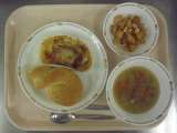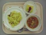【献立】 パエリア 牛乳 トマトスープ ス...
