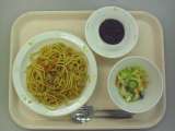 【献立】 スパゲッティボンゴレ 牛乳 ツナコーンサラダ...