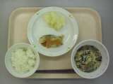 【献立】 ごはん 牛乳 五目うま煮 焼きし...