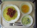 【献立】 スパゲッティミートソース 牛乳 コーン入りフ...