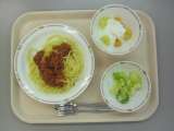 【献立】 スパゲッティミートソース 牛乳 コーンサラダ ...