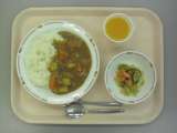 【献立】 カレーライス 牛乳 こんにゃくサラダ キ...