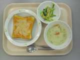 【献立】 チーズトースト 牛乳 クリームスープ ベ...