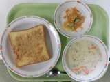 今日の献立は、牛乳、セサミトースト、クラムチャウダー、パリパリサラダです。 今...