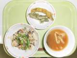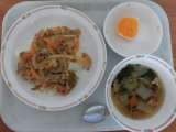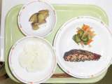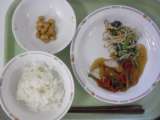 今日の献立は、牛乳、ごはん、魚の竜田揚げ、野菜のからしじょうゆかけ、りんごです。...