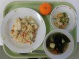 今日の献立は、牛乳、チャーハン、わかめスープ、白菜の中華サラダ、冷凍みかんです。...