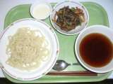 今日の献立は、冷しつけめん、牛乳、かきあげ、かぶの土佐漬け、甘夏ミルクゼリーで...