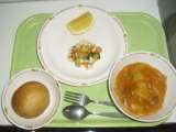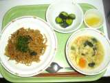 今日の献立は、ソース焼きそば、牛乳、じゃばらきゅうり、中華風コーンスープ、やわ...