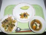 今日の献立は、いなりずし、牛乳、五目卵焼き、野菜の辛子和え、豚汁、メロンです。...