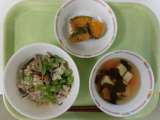 今日の献立は、牛乳、五目ごはん、かぼちゃの含め煮、すまし汁です。 今日使用の食...