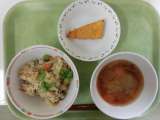 今日の献立は、牛乳、ツナピラフ、大豆とコーンのフリッター、キャベツスープです。 ...