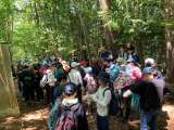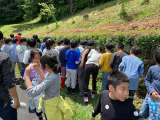里山体験が始まりました。寸前まで雨。 集合すると晴れ。持ってますね。