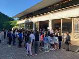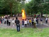 ちょっとあかるいのですが、キャンプファイヤーが始まりました。校歌を歌い、燃えろよ...