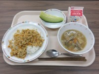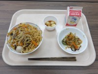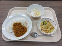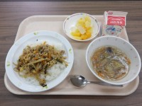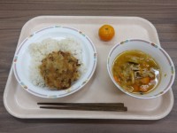 高野豆腐のそぼろ丼 利休汁 くだもの 牛乳...