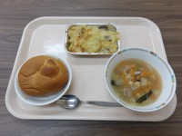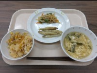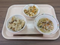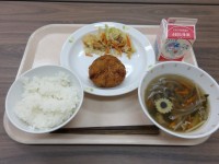 ごはん 肉じゃがコロッケ ごまあえ 沢煮椀...