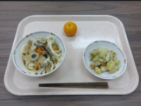魚のかば焼き丼 呉汁 くだもの 牛乳