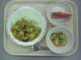 【献立】 夏野菜のカレーライス 牛乳 こんにゃくサラダ...