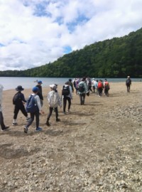 最初の見学地、湯の湖到着しました。これからハイキングにに出発します。